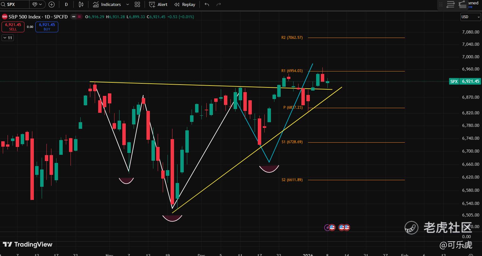 1、大盘近期小幅震荡的概率大,趋势还是向上的,大家不用担心。最差的可能是会跌到6837(很小很小的概率),如果真有这种情况发生,可以去捡7姐妹的筹码(1月底财报了)