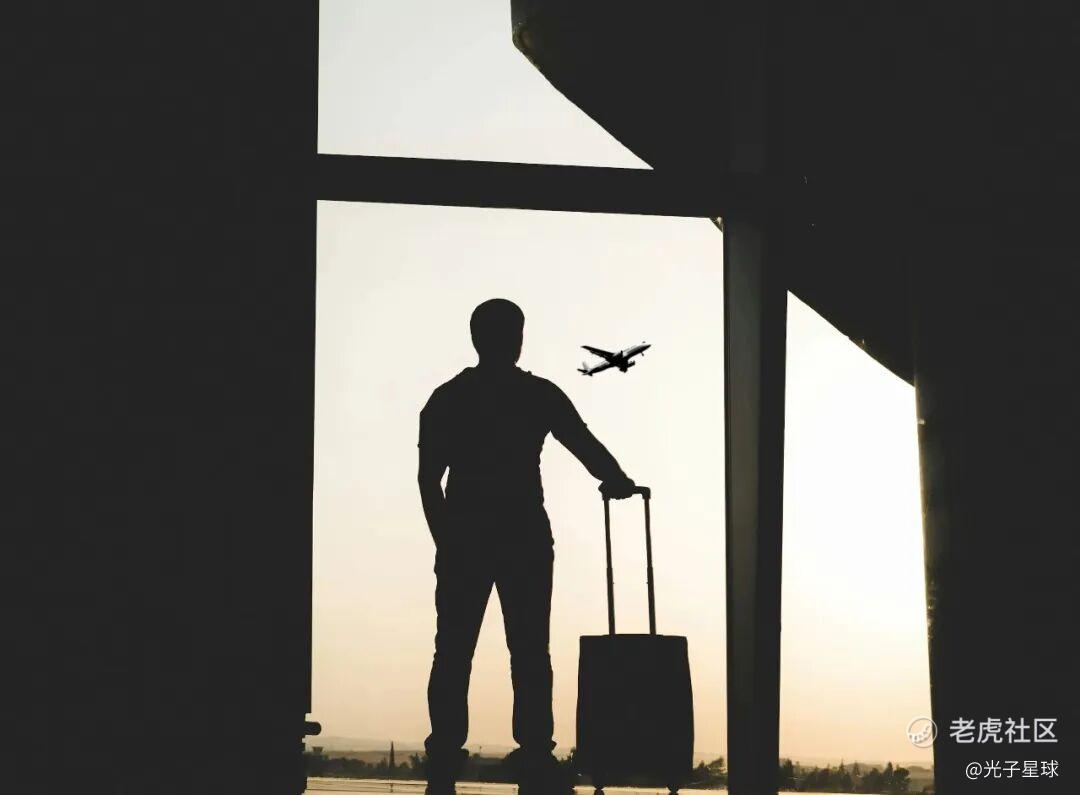 机场内拿着行李的男子剪影