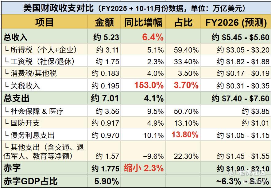 但问题在于:赤字有没有变小,并不等于风险消失。真正的风险藏在结构里,尤其是两条线:一条叫“关税”,一条叫“利息”。