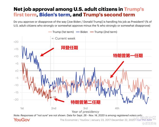 另一方面,特朗普的民意支持度已经明显过了“蜜月期”,出现了较大幅度回落,这会直接压缩他的政策操作空间。比如路透/益普索在2025年12月的民调显示,他的支持率降到约39%,相比年初明显下滑。