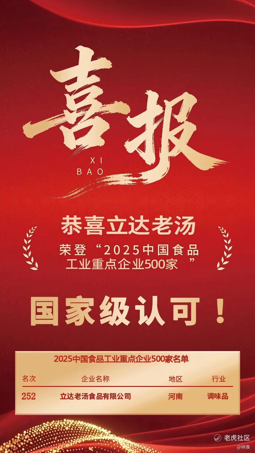 近日,2025全国食品工业科技进步工作会议暨中国食品产业发展研究报告发布会在北京举行。会上,中国食品工业协会正式发布《2025中国食品产业发展报告》,并首次推出“2025中国食品工业重点企业500家”名录,立达老汤食品有限公司(以下简称“立达老汤”)以252名成功入围2025中国食品工业重点企业500家。