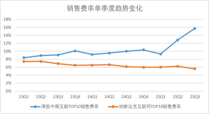 图:中概互联及纳斯达克头部企业销售费率,来源:Choice金融客户端