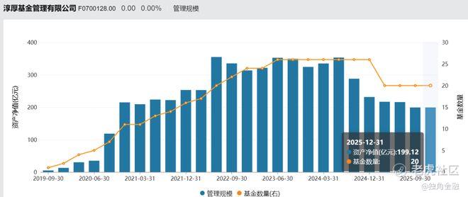 Wind数据显示,截至2025年年末,淳厚基金的管理规模已滑落至199.12亿元,在公募基金公司中规模排名102位。