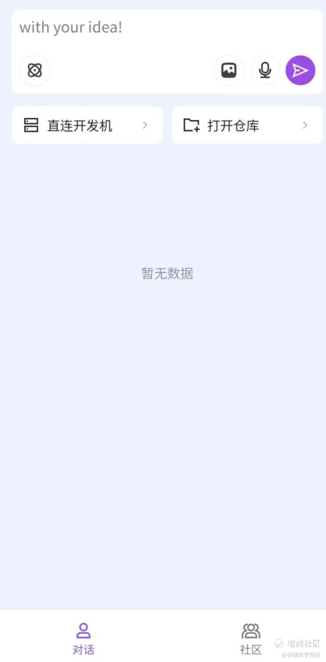 从测试界面来看,“With” 的交互逻辑高度简化:平台顶部设置了对话输入框,支持文字、语音、图片等输入方式,开发者可直接以自然语言输入开发需求;输入框下方配备“直连开发机”“打开仓库”两大核心功能入口,前者可对接开发环境,后者支持代码仓库的快速访问。当前测试版本显示 “权限不足”,推测处于功能验证阶段。