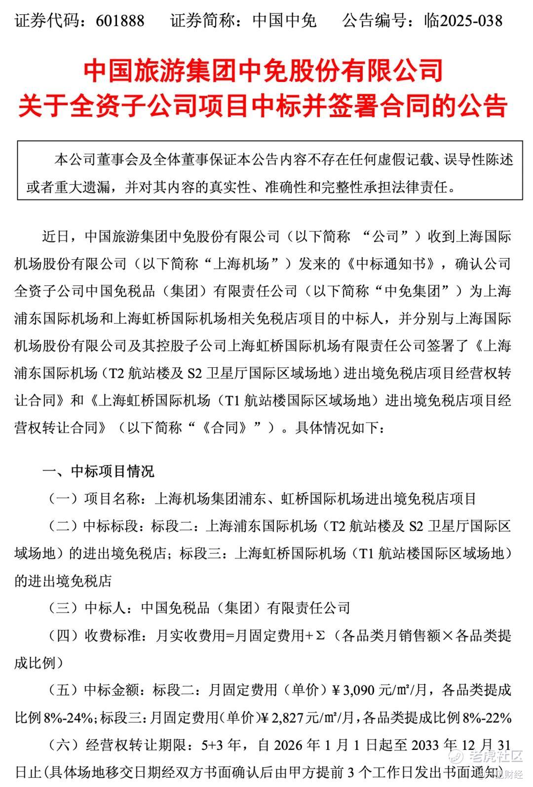 就在2025年12月17日,中国中免公告,收到上海机场发来的《中标通知书》,确认公司全资子公司中免集团为上海浦东国际机场和上海虹桥国际机场相关免税店项目的中标人。