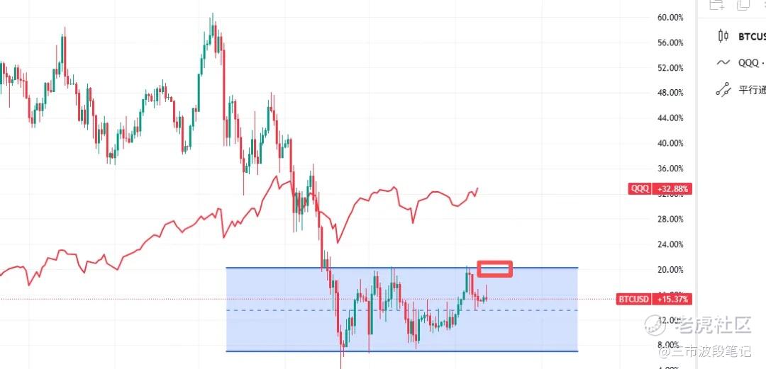 从趋势线上,明显也能看出,相对于QQQ ,BTC目前已经超卖了很多。