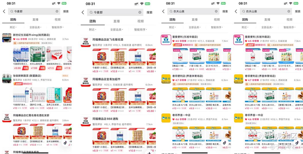 线下渠道集体缺席的同时,今麦郎在新兴销售渠道的表现同样乏力。随着抖音团购在当地超市、便利店等多场景渗透,不少商家纷纷布局这一赛道抢占流量红利。例如,在抖音团购平台搜索“农夫山泉”,能看到大量终端商家上线的矿泉水团购链接;作为对比,当地上架今麦郎相关产品团购的商家,不足7家。