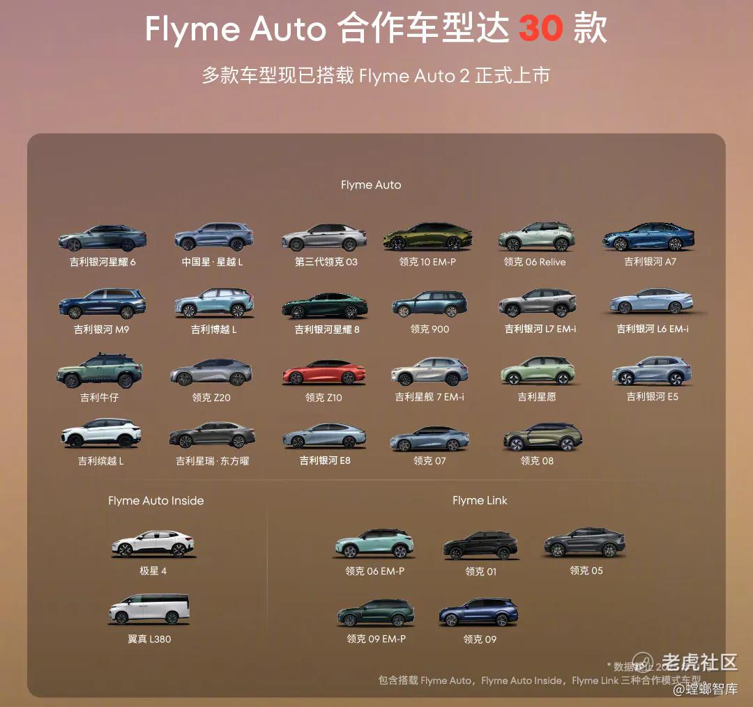 无独有偶,眼看着智能汽车赛道日趋火热,魅族也充分发挥自身软件层面的优势,打造了Flyme Auto系统。官方数据显示,截至2025年11月,Flyme Auto系统合作车型总销量超211万辆,覆盖30款车型。