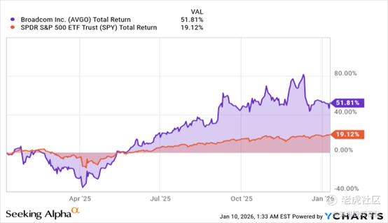 当前,博通的客户多元化进程正在加速,订单储备的转化已近在眼前,现金流创造能力依旧强劲。自10月份来,博通股价仅上涨3.4%,但在过去12个月里,其表现显著跑赢大盘。这是一场基于执行力的增长叙事,而非对市场需求的押注,而博通恰恰具备规模化兑现订单的坚实基础。