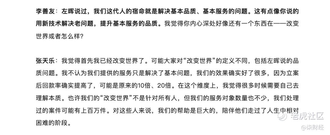 按照张天乐的描述,立案的威慑力立竿见影,“我们的效果确实好了很多,因为立案后回款率确实提高了,可能是原来的10倍、20倍”。同时张天乐认为,对于逾期借款人而言,“我们的帮助是巨大的,陪伴他们走过了人生中相对困难的阶段。”