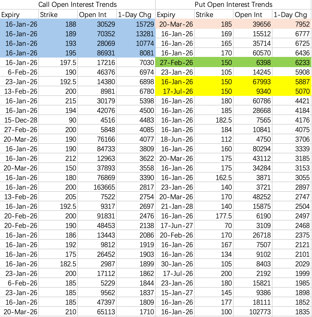 机构本周套利策略是sell call188 $NVDA 20260116 188.0 CALL$ ,对冲buy call193 $NVDA 20260116 193.0 CALL$ 。