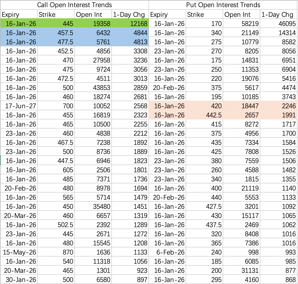 比较尴尬,有人在周五卖了平价call445 $TSLA 20260116 445.0 CALL$ ,开仓1.2万手,然后就被逼空了。