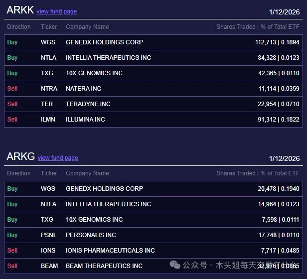 木头姐抄底买入1600万美元WGS 卖出1300万美元ILMN