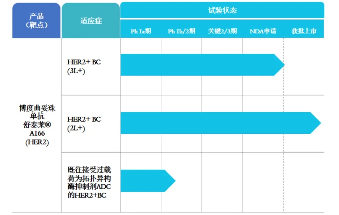 在HER2 ADC赛道中,科伦博泰虽属后来者,但相较于荣昌生物,其在HER2阳性乳腺癌领域的研发布局更为积极主动。这份战略主动性,直接推动其核心产品博度曲妥珠单抗(A166)成功突围,成为首款获批HER2+乳腺癌二线治疗的国产ADC药物,抢占了国产替代的关键先机。