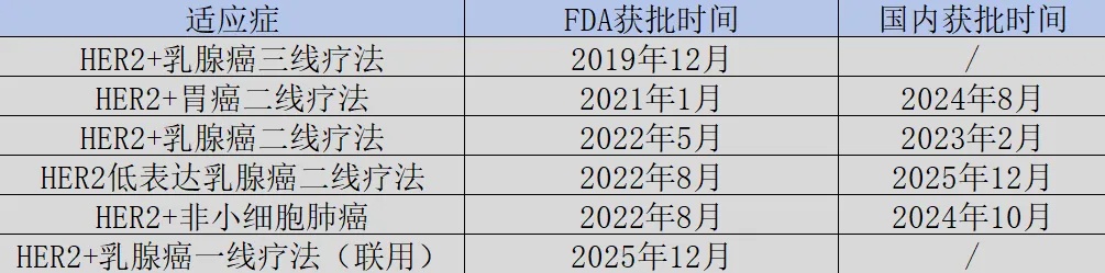 图:Enhertu获批适应症一览,来源:锦缎研究院