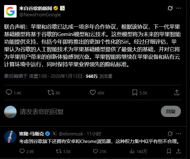 虽然苹果强调用户的隐私有保障(数据通过私有云计算处理,谷歌接触不到),但这种巨头之间的权力重构,确实让人对未来的选择权捏了一把汗。