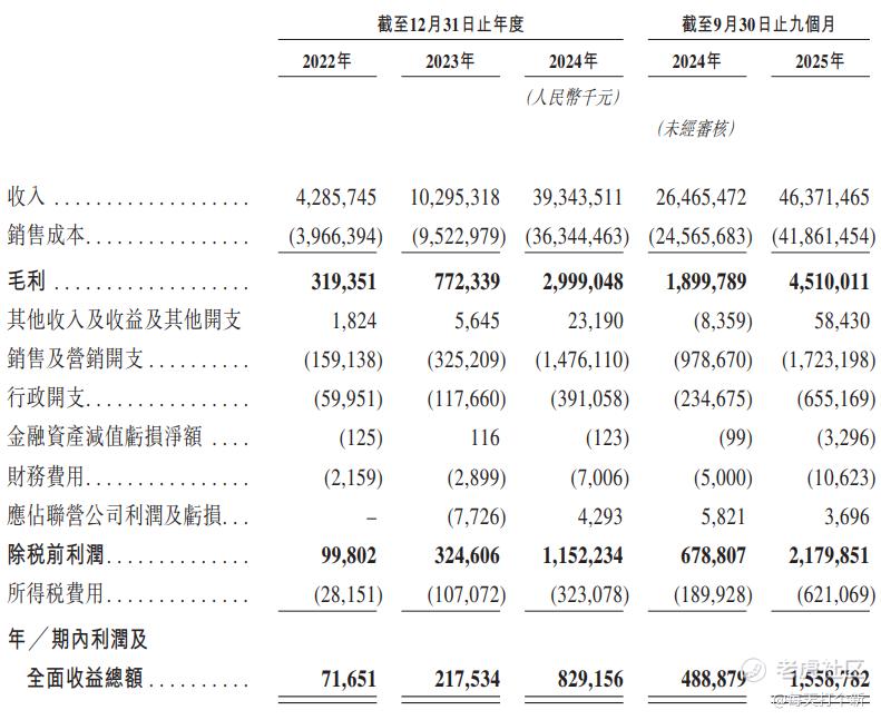 先看数据,公司的业绩增长十分迅速,2022-24年,经调整净利润年化增长235%,营收年化增长203%,毛利率保持稳定,2025年前九月有一波突增,从7.2%上升至9.7%。