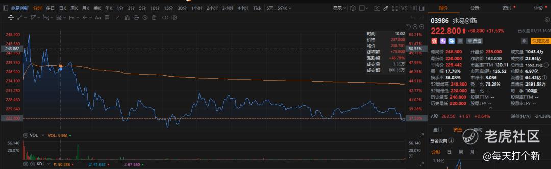 今天三只新股上市,兆易创新、红星冷链、BBSB,兆易保持稳定,当前227港元,依然落在我昨天的200-230港元预期内。