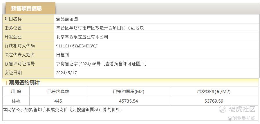 此外,2024年5月,北京市丰台区的「中建壹品·花香壹号」(备案名:壹品馥丽园)542套房源取得预售证。在存量房扎堆的丰台区,项目降价已成主流。据悉,此项目指导价为7.2万元/㎡,但成交均价只有5.38万元/㎡。在如此明显的价格差距下,目前仍有近百套房源没有完成签约销售。