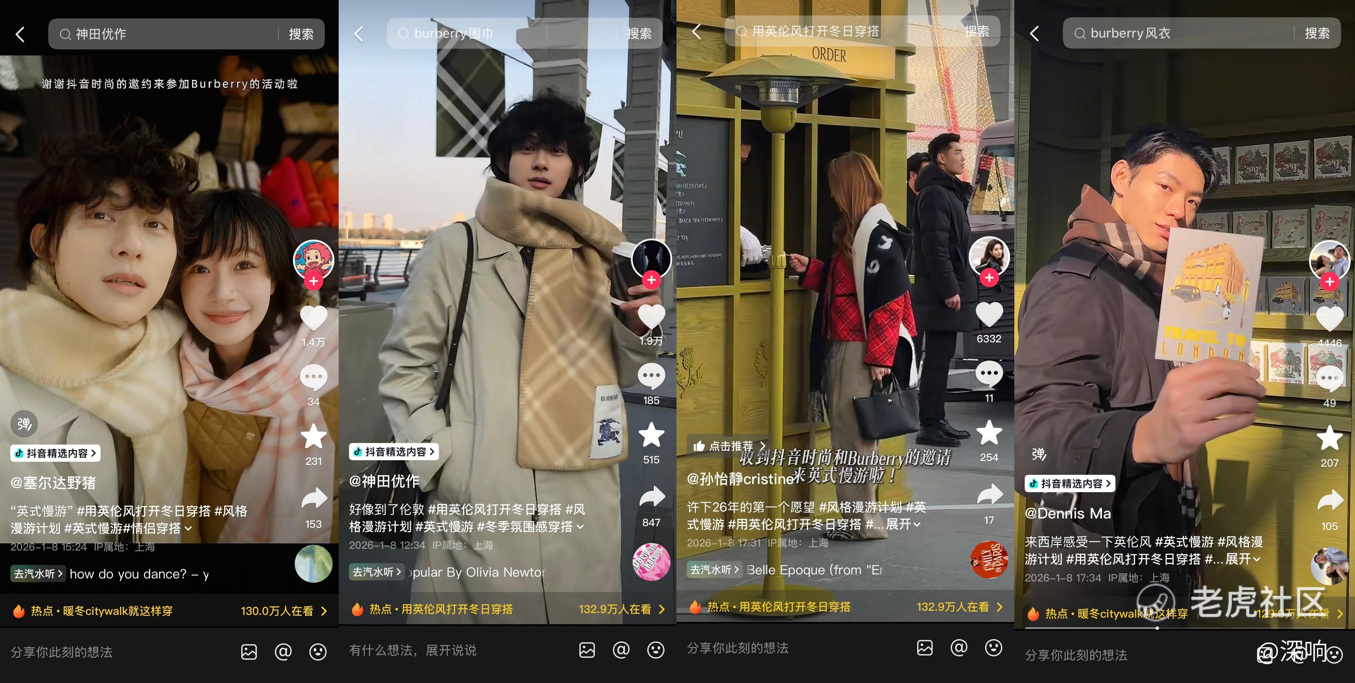 去到活动现场的创作者和用户们,也自然而然地将体验分享到抖音,延续着这场“慢游”。@塞尔达野猪、@神田优作、@孙怡静cristine、@Dennis Ma等抖音时尚创作者都分享了去到活动现场的视频,他们将经典风格融入自己的日常生活穿搭,也带用户第一视角感受了“英式慢游”的闲适氛围。