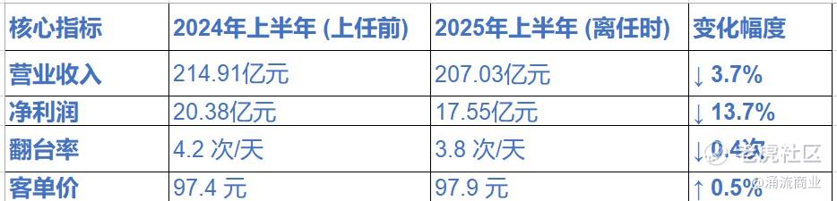 一年之后,海底捞2025年上半年业绩显示:整体营业收入为207.03亿元,较去年同期减少3.7%;净利润17.55亿元,同比减少13.7%;核心经营利润24.08亿元,同比减少15%。