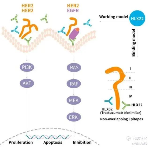 这就是后一条路线——新表位的her2单抗了。其代表为国内企业复宏汉霖打造的新型Her2单抗——HLX22。机制方面,HLX22为靶向Her2的新表位单克隆抗体,可与曲妥珠单抗结合于 Her2亚结构域 IV的非重叠结合位点,从而避免HLX22与曲妥珠单抗竞争性结合Her2,实现二者同时结合,从而增强双靶向治疗的协同效应,从而有效促进Her2同源二聚体及Her2/EGFR异源二聚体的内吞和降解,HLX22将Her2的内吞效率提高了40%-80%,进而产生更强的Her2受体阻断效果。