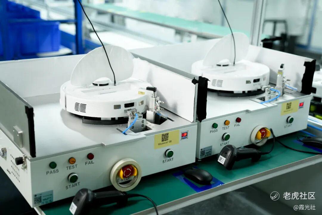 工作人员向霞光社表示,“质检环节多个部分来自于石头科技自己的发明,这也是自有工厂的优势。”一台台扫地机通过设备质检检测后,才能放入实际场景进行测试,确保每台扫地机都符合出厂标准。