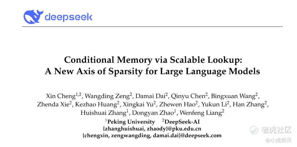 DeepSeek梁文锋团队与其北大合作者在今日凌晨发布的重磅论文《Conditional Memory via Scalable Lookup》,彻底打破了这一僵局。他们提出了一种全新的Engram(印迹)模块,在传统的“条件计算”(MoE)之外,开辟了第二条稀疏化战线——“条件记忆”。