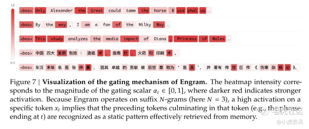 这说明,当我们将“局部记忆”外包给Engram后,Transformer原本的注意力机制就能更高效地捕捉几万字文档中的“草蛇灰线”。