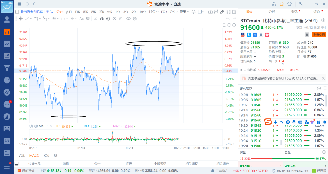 26-1-9 数字货币之比特币震荡回调下来补回一笔多(3)