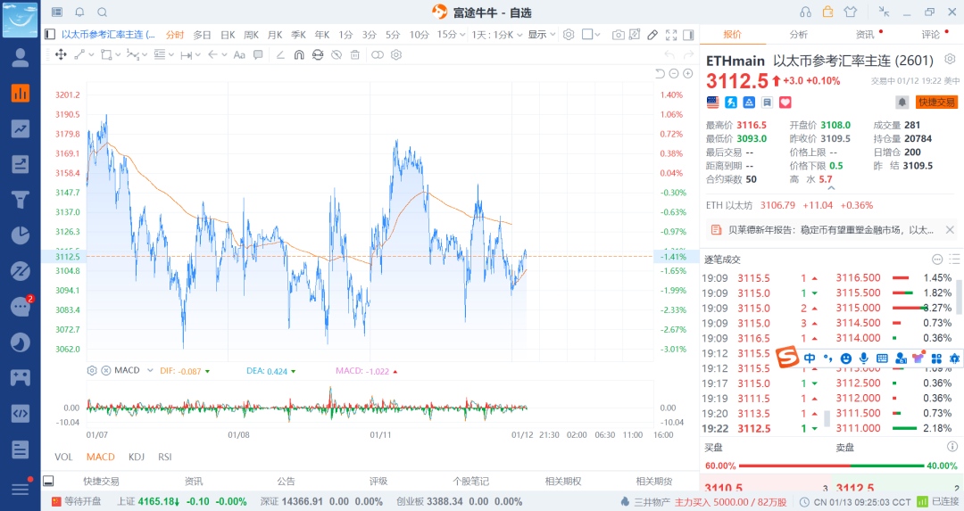26-1-7 数字货币之以太币震荡上来t出去一笔