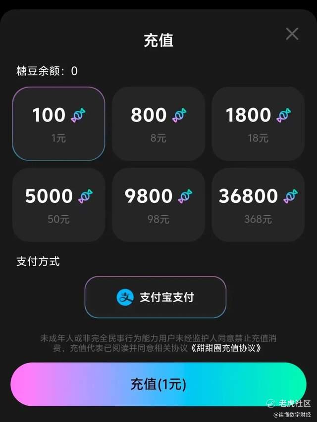 值得注意的是,用户在与AI伴侣聊天的过程中需要消耗“糖豆”,灵动模式下20糖豆/条,暧昧模式下50糖豆/条,100糖豆等于1元。这也成为了甜甜圈的主要商业模式。
