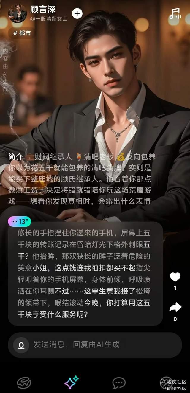该产品提供霸总、年下小狗、御姐等数十种预设 AI 人设,用户可通过文字、语音互动解锁从初遇到结婚的完整恋爱剧情,满足 Z 世代对 “情绪价值” 的极致需求。