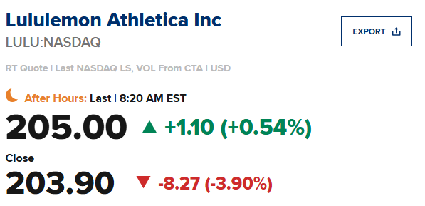 lululemon athletica (LULU)再次确认了第四季度的业绩指引,预计每股收益处于此前预期的上限区间(4.66 - 4.76 美元),市场预期值 4.77 美元;预计第四季度的营收处于此前预期的上限区间(35.0 - 35.9 亿美元),市场预期值 35.7 亿美元。公司此前对毛利率、销售、一般及管理费用,以及有效税率的指引没有变化。