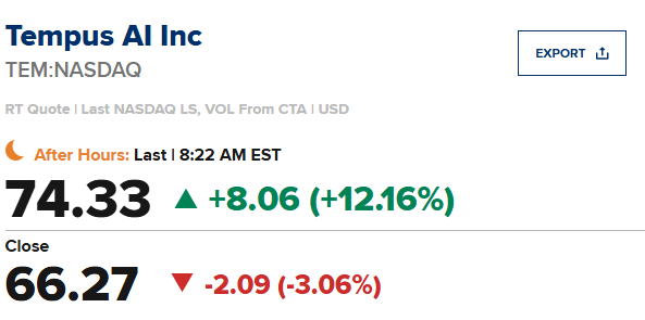 Tempus AI(TEM)上调了第四季度业绩指引,预计第四季度营收约为 3.67 亿美元,市场预期值 3.6004 亿美元。