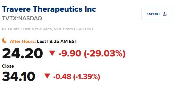 向下跳空:TVTX -27.1%, INV -3.9%, GDS -3.3%, XPEV -1.9%, CRL -1.3%, SSSS -0.9%, COHR -0.7%, USFD -0.5%
