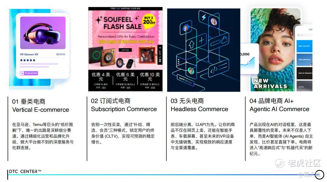 本期直播中,DTC&UGC Center 创始人 William 基于对海外电商前沿实践的深度洞察,重磅揭示 2026 年引领全球电商行业增长的四大新范式——垂类突围、订阅进化、无头架构、AI 融合。这不仅是对传统电商玩法的系统性迭代,更是跨境品牌面向未来必须具备的新一代增长引擎。