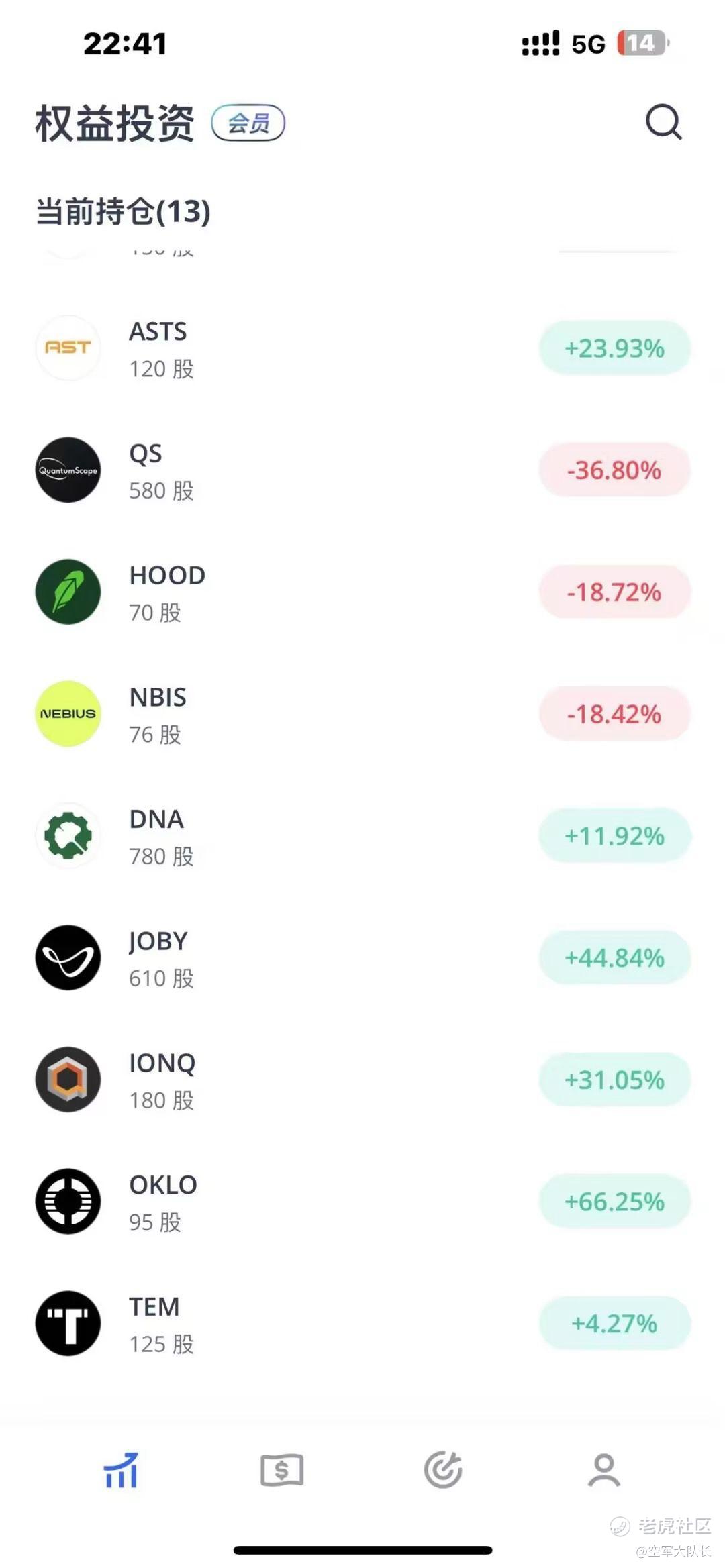现在我还是看好DNA,QS,JOBY,IONQ这四个股票,理由就是没有怎么大涨,像QS又创了历史新低,风险是涨出来的,机会是跌出来的,长线股跌多了就是抄底的好机会。一个月以后,这些股票总会有一两个大涨的。