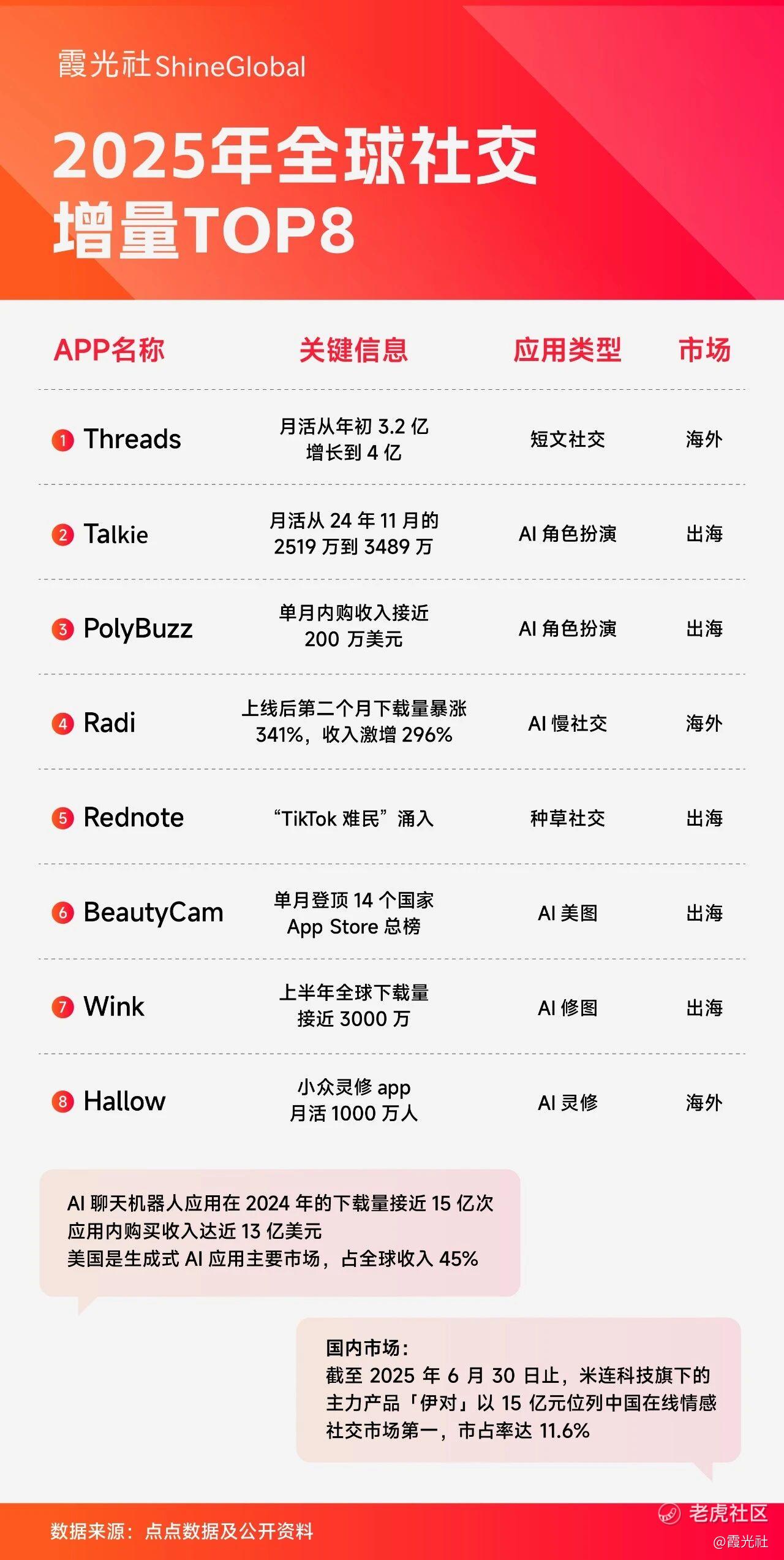 时值新岁伊始,回顾2025这个如火如荼的“社交出海大年”,霞光社总结出了六个关键性趋势。