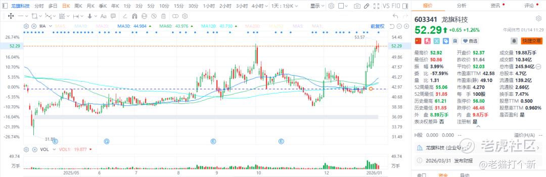 整体评价:看25年的话,龙旗营收同比-10%,智能手机代工持续承压,仅靠AIoT增长难顶,毛利率小幅度回升但不高,基本面上一般般的,虽说是手机ODM的NO.1,手机业务价格战竞争激烈,海外主要为三星,内地机型占主导,外资认可度也是偏弱。