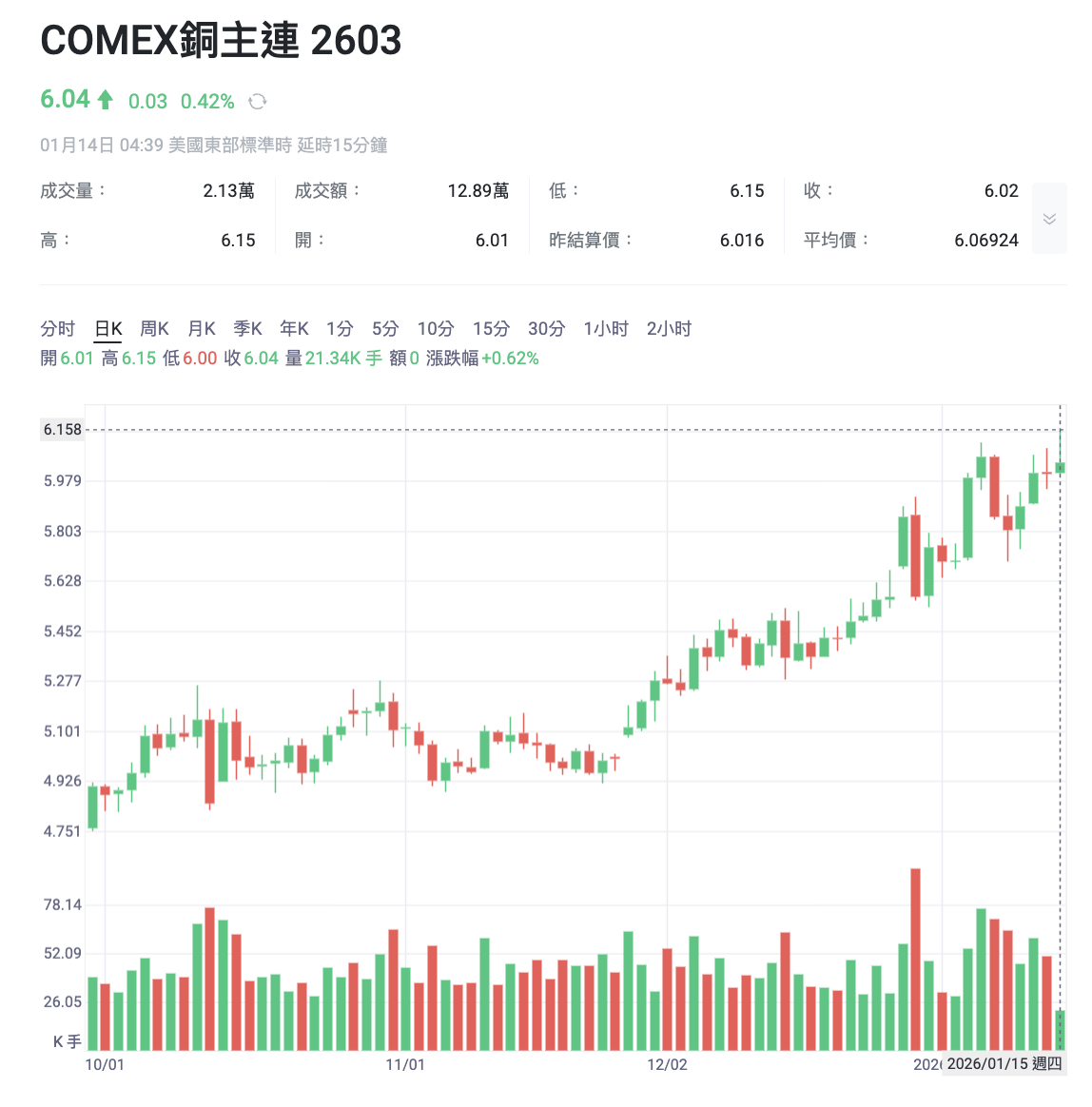 江西铜业 $江西铜业股份(00358)$ 1月13日微跌0.18%,但3天累涨4.29%、5天飙12.76%。