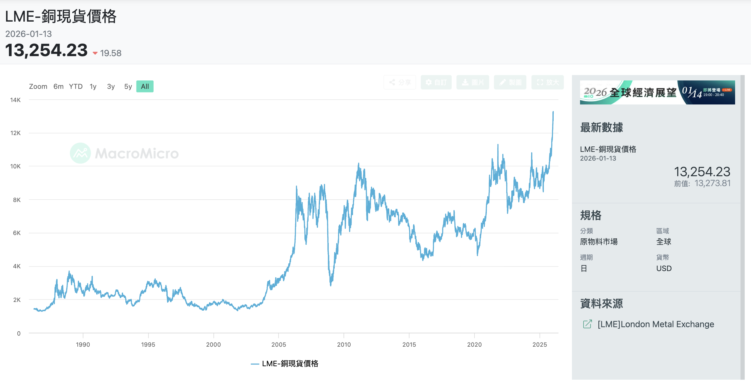 就在2026年1月12-14日这短短两天,全球铜价像坐上火箭一样,LME现货铜直奔13,000美元/吨大关,1月13日更是一度摸到13,300美元/吨的高峰,创下历史新高。这波涨势可不是闹著玩的,背后藏著供应短缺的“隐形炸弹”、地缘政治的“关税阴霾”,还有电动车、AI数据中心这些“饥渴大户”的需求狂飙。