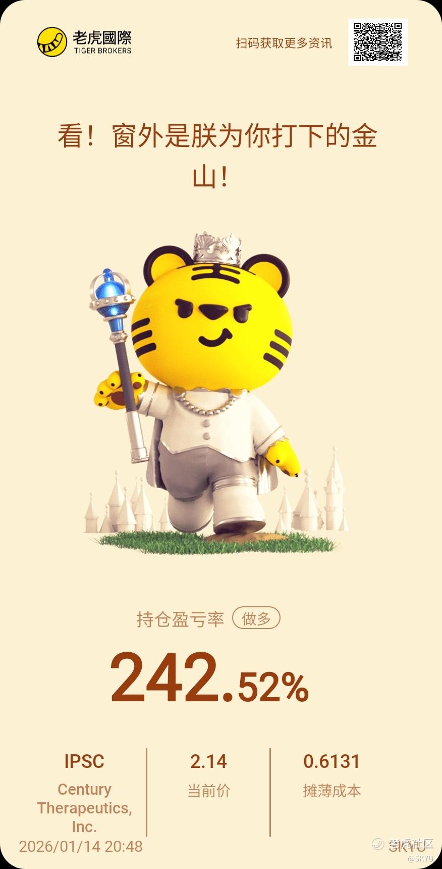 {"i18n":{"language":"zh_CN"},"data":{"magic":2,"id":521662025192952,"tweetId":"521662025192952","gmtCreate":1768394936738,"gmtModify":1768395075470,"author":{"id":3572836179627094,"idStr":"3572836179627094","authorId":3572836179627094,"authorIdStr":"3572836179627094","name":"SKYU","avatar":"https://static.laohu8.com/default-avatar.jpg","vip":1,"userType":1,"introduction":"","boolIsFan":false,"boolIsHead":false,"crmLevel":2,"crmLevelSwitch":0,"individualDisplayBadges":[],"fanSize":0,"starInvestorFlag":false},"themes":[{"themeId":"5bfad02ab61749c8bfe6573ac7bbe8a3","categoryId":"b76d3c59fc044df59779c041b25852a6","name":"晒晒更赚钱","type":0,"rnLink":"https://laohu8.com/RN?name=RNTheme&page=/theme/detail&rndata={\"themeId\":5bfad02ab61749c8bfe6573ac7bbe8a3}&rnconfig={\"headerBarHidden\": true}","description":"晒晒你的盈亏单,秀秀虎友们的实力!","image":"https://static.tigerbbs.com/347184265ee0be8c363259951f8033cb"}],"images":[{"img":"https://static.tigerbbs.com/f5f1829da609da5747dbc14332e6f276","width":"876","height":"1720"}],"coverImages":[{"img":"https://static.tigerbbs.com/f5f1829da609da5747dbc14332e6f276","width":"876","height":"1720"}],"title":"","html":"<html><head></head><body><p><a href=\"https://laohu8.com/S/IPSC\">$Century Therapeutics, Inc.(IPSC)$ </a> </p><img src=\"https://static.tigerbbs.com/f5f1829da609da5747dbc14332e6f276\" tg-width=\"876\" tg-height=\"1720\"></body></html>","htmlText":"<html><head></head><body><p><a href=\"https://laohu8.com/S/IPSC\">$Century Therapeutics, Inc.(IPSC)$ </a> </p><img src=\"https://static.tigerbbs.com/f5f1829da609da5747dbc14332e6f276\" tg-width=\"876\" tg-height=\"1720\"></body></html>","text":"$Century Therapeutics, Inc.(IPSC)$","highlighted":1,"essential":1,"paper":1,"likeSize":1,"commentSize":0,"repostSize":0,"favoriteSize":0,"link":"https://laohu8.com/post/521662025192952","repostId":0,"isVote":1,"tweetType":1,"viewCount":34,"commentLimit":10,"likeStatus":false,"favoriteStatus":false,"reportStatus":false,"symbols":["IPSC"],"verified":2,"subType":0,"readableState":1,"langContent":"EN","currentLanguage":"EN","warmUpFlag":false,"orderFlag":false,"shareable":true,"causeOfNotShareable":"","featuresForAnalytics":["晒单贴"],"commentAndTweetFlag":false,"andRepostAutoSelectedFlag":false,"upFlag":false,"length":32,"optionInvolvedFlag":false,"xxTargetLangEnum":"ORIG"},"commentList":[],"hasMoreComment":false,"orderType":2}
