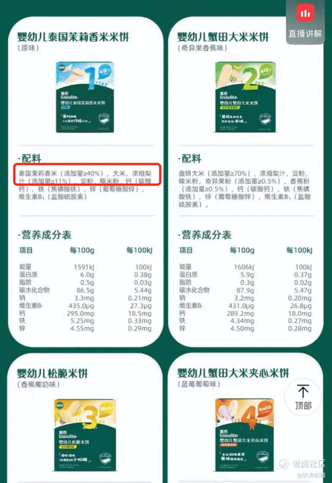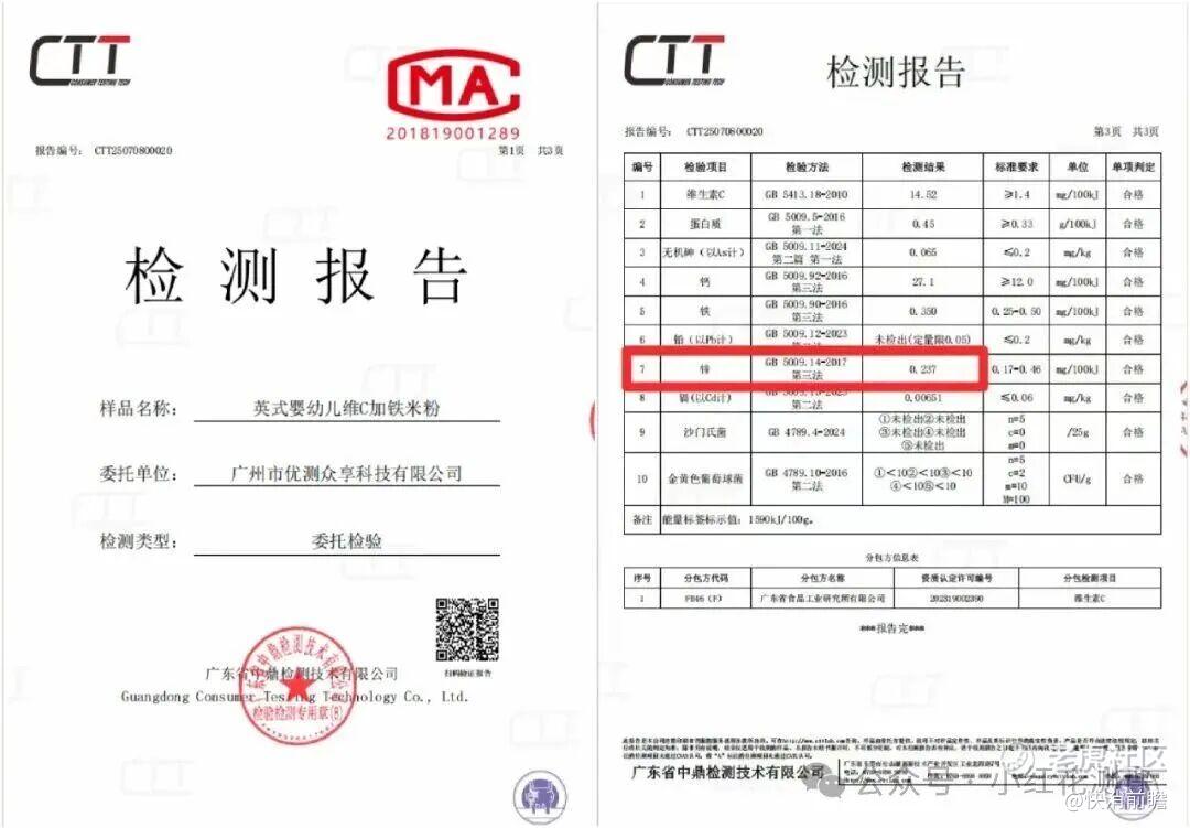 除此之外,英氏控股产品还出现营养含量标示不实问题,第三方测评机构“小红花测评”此前对市售多款婴儿营养米粉检测发现,英氏出品的一款标称添加锌元素的“维C加铁米粉”,实测锌含量只有0.237mg/100kJ,不足标签标示值的76%。按照国家标准GB13432规定,强化营养成分实测值不得低于标示值的80%,该产品已不符合标准要求。虽然其锌含量绝对值仍在安全范围,不至危害健康,但标签虚标本身即构成品质瑕疵。营养标示过高而实际含量不足,容易误导父母以为宝宝摄入充足从而放松补充,实则可能造成营养缺口;反之也可能因重复补充导致过量风险。
