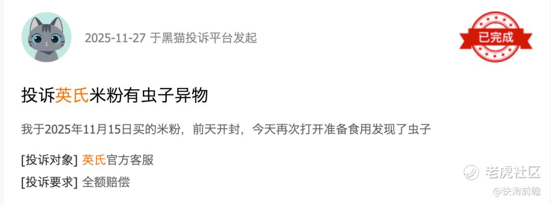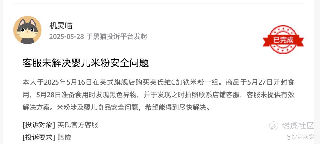 据黑猫投诉平台不完全统计,截至2025年12月31日,不少关于英氏控股的米粉、磨牙棒、果泥等辅食的质量投诉,涉及异物、变质、包装破损等多个方面。频发的品控问题无疑给英氏品牌声誉蒙上阴影。