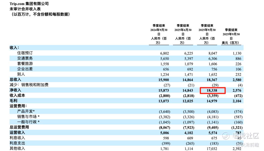 截图自携程2025年三季度业绩公告