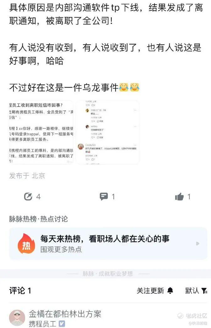 随后公司澄清这只是二级部门HR误操作,将模板短信错发给了本部门员工,并非真的要全员裁员。携程通过内部渠道向员工解释事实并致歉,才平息了这场虚惊。尽管这起事件是内部管理事故,但消息走漏后也引发网友调侃,进一步凸显携程近期的负面存在感。