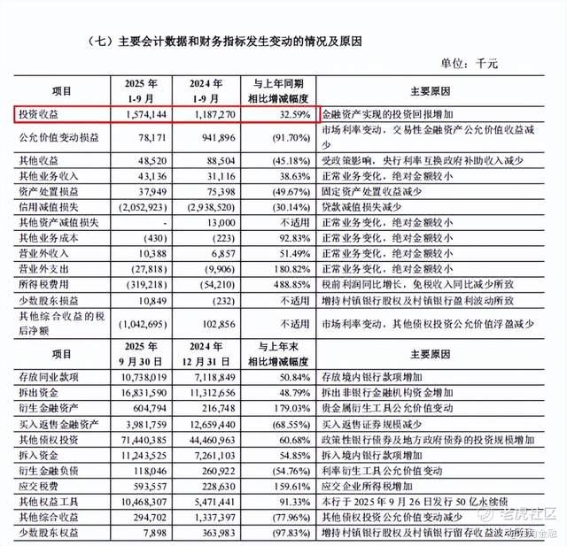 从2025年前三季度业绩来看,在保持利息净收入基本稳定的同时,投资收益达到15.75亿元,同比增幅32.59%,是推动利润增长的关键,手续费及佣金净收入7.01亿元,同比增长2.51%,增速稳定。