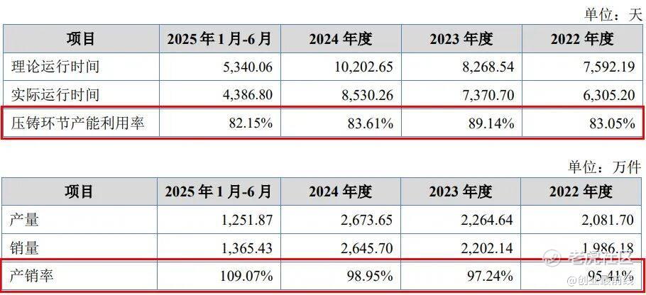 但值得注意的是,以压铸环节的产能利用率替代计算,报告期内公司产能利用率分别为83.05%、89.14%、83.61%和82.15%,产能利用并不充足。