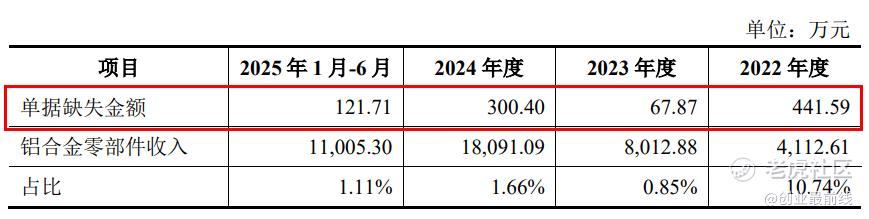 报告期内,隆源股份主营业务收入中对应单据存在缺失或缺少签字的金额分别为1062.73万元、1223.57万元、893.18万元和353.76万元。同期,铝合金零部件产品收入确认存在少量单据缺失的情形,金额为441.59万元、67.87万元、300.40万元和121.71万元。